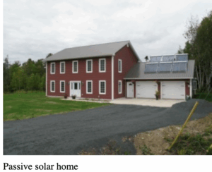 This passive solar house is situated on 0.6 hectares (1.5 acres) facing slightly east of due South. The insulated concrete formwork (ICF) construction allows for maximum air and wind tightness and achieves an R-value of R-29 (RSI 5.3) in the walls. The attic is insulated to R-50 (RSI 10.6). There is an insulated 1.22 m (4′) frost wall and the floor of the house on slab construction (no basement) is insulated to R-10 (RSI 3.6). All windows are EnergyStar rated double-glazed.