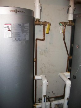The heat transfer fluid is circulated through black absorber plates inside the collectors, which are designed to absorb and transfer heat to the fluid, while also minimizing solar heat loss and reflection back into the atmosphere. During the summertime, the fluid temperature can reach 100 ° C (212 F), because the outside ambient temperature is higher, and heat loss is slower. However, during the winter of 2010-2011, the collectors were completely ineffective for 6-8 weeks because they were covered by snow. The system could have functioned i